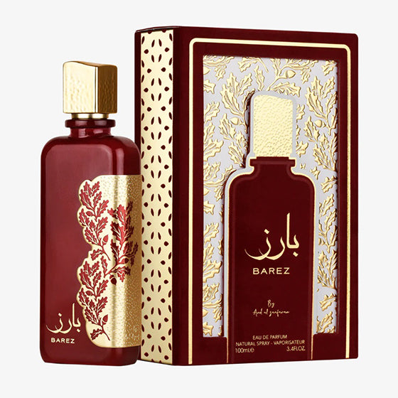 BAREZ is a radiant and sophisticated fragrance that blends freshness with warmth. It opens with a sparkling burst of pear and cassis, offering a juicy, fruity allure. The heart unveils a creamy bouquet of tuberose and jasmine, adding sensual sweetness and honeyed elegance. The base settles into a velvety mix of cashmeran and sandalwood, providing a warm, musky richness. BAREZ is a fragrance of contrasts—fresh yet sensual, vibrant yet comforting—ideal for those seeking an unforgettable signature scent.